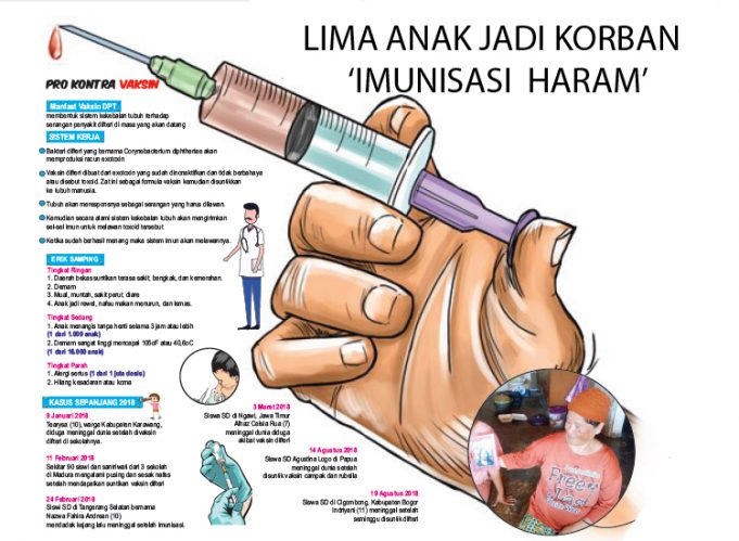 Sepanjang 2018, kasus kematian setelah pemberian vaksin sudah menelan lima korban. Pada 9 Januari 2018, Tearysa (10) warga Kabupaten Karawang meninggal dunia setelah divaksin difteri di sekolahnya. Lalu pada 24 Februari 2018, siswi SD di Tangerang Selatan bernama Nazwa Fahira Andrean (10) mendadak kejang lalu meninggal setelah diimunisasi. Bulan berikutnya pada 3 Maret 2018, siswa SD di Ngawi, Jawa Timur, Alhaz Celsia Rua (7), juga meninggal dunia diduga akibat vaksin difteri. Hal yang sama juga terjadi pada siswa SD Agustina Logo di Papua yang meninggal dunia setelah disuntik vaksin campak dan rubella pada 14 Agustus 2018.