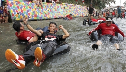 “Paling disukai ya main di sungai itu, makanya dominan main di air. Lomba ngalun dan adu bantal atau tinju air, yang paling favorit,” kata Taufik.