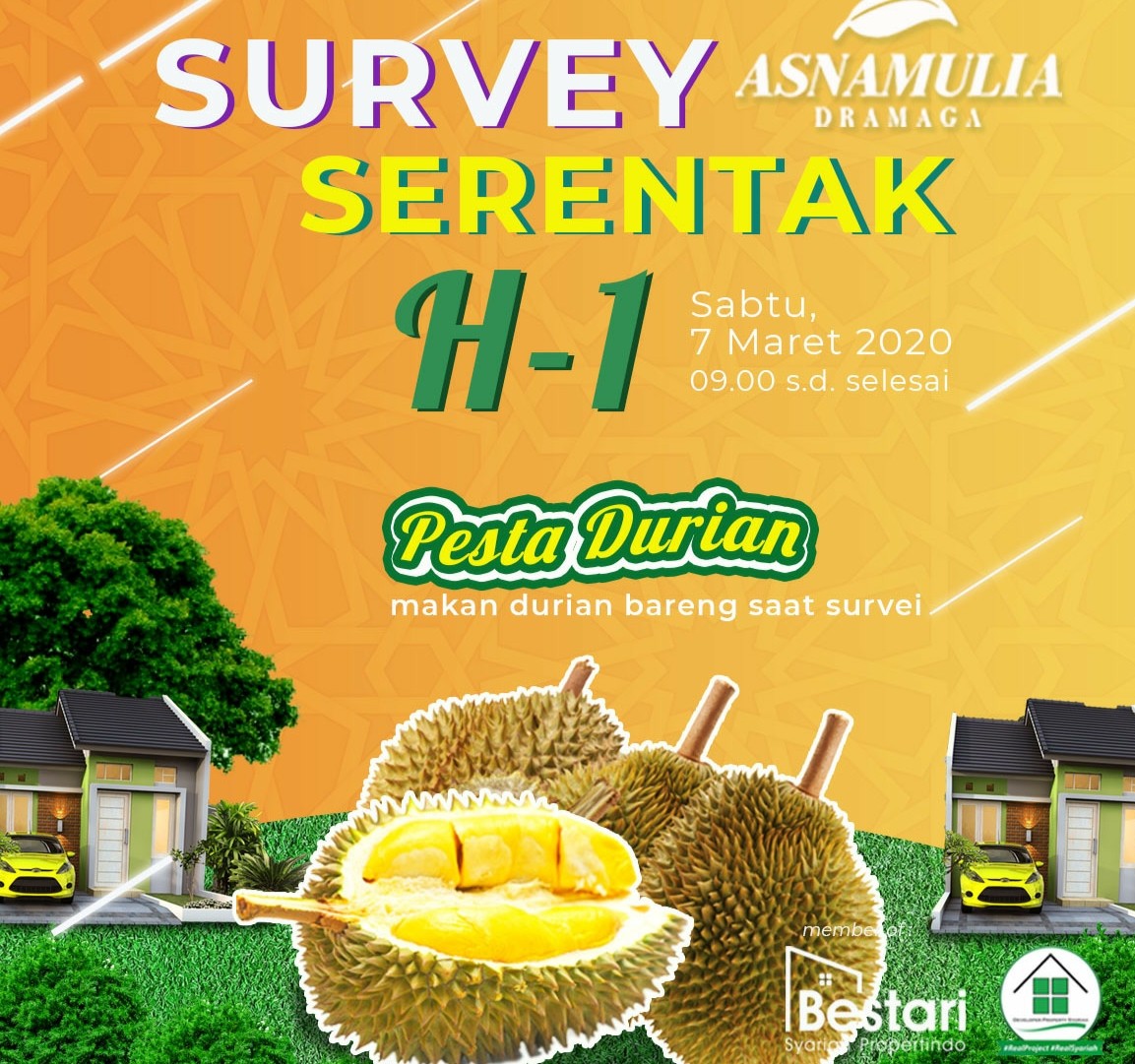 BOGORDAILY – Berjamaah dan terus belomba-lomba dalam kebaikan adalah perintah agama, hal tersebut coba diramu oleh tim Management Perumahan Syariah Asna Mulia Dramaga. Project yang berada di Cibadak, Kecamatan Ciampea, Kabupaten Bogor tersebut terlihat telah siap menggelar kegiatan yang bertema “Survey Serentak dan Makan Durian Bersama” pada esok hari Sabtu (8/03/20).