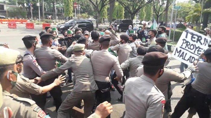 BOGORDAILY -Unjuk rasa mahasiswa di depan Gerbang Kantor Bupati Bogor di Jalan Tegar Beriman, Cibinong, Kabupaten Bogorberujung ricuh, Kamis (17/9/2020).