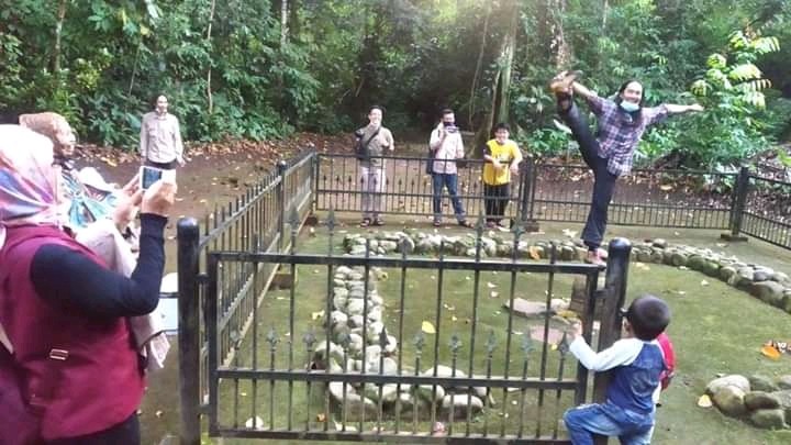BOGOR DAILY – Aksi beberapa pengunjung Situs Karang Mulyan melecehkan petilasan bersejaran yang berada di Desa Karang Mulyan, Kecamatan Cijeungjing, Ciamis (5/10/2020).