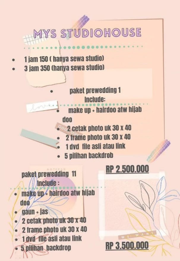 Owner MYS Studiohouse Maya Susanti mengatakan, ada beberapa paket yang ditawarkan dengan harga terjangkau.