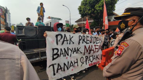 Para demonstran meminta Presiden RI Joko Widodo supaya turun tangan dalam menyelesaikan kasus tanah milik Negara seluas 24 Hektar yang ada di Kota Bogor.