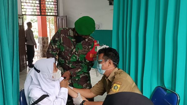 Pada kegiatan tersebut, ratusan pelajar cukup antusias, namun ada aja sejumlah siswi yang merasa takut disuntik vaksin.