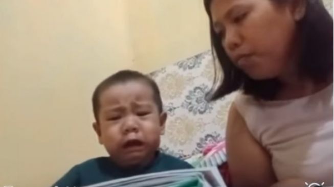 Sang anak pun makin kesal dan menagis sejadi-jadinya karena tak diundang ibunya saat menikah dan bocah tersebut terus mengulangi pertanyaan yang sama.
