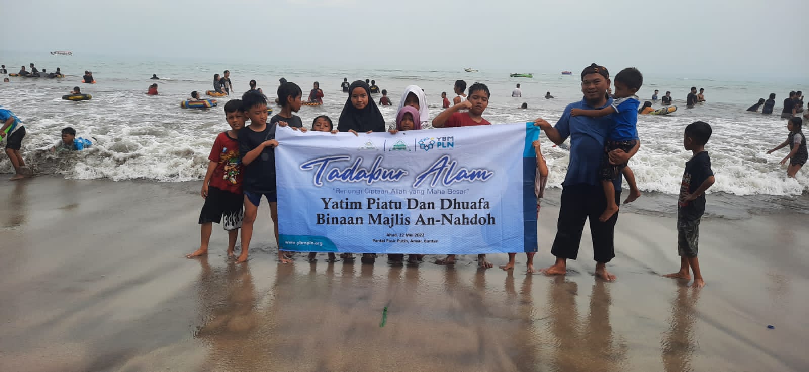 Ketua Majelis Taklim An Nahdoh Ustad Cahyadi mengatakan, untuk mengenalkan yatim dan duafa pada alam pihaknya dibantu YBM PLN peduli mengajak yatim bersama ibunya dan duafa untuk pergi ke Pantai Badulu Anyer, Banten.