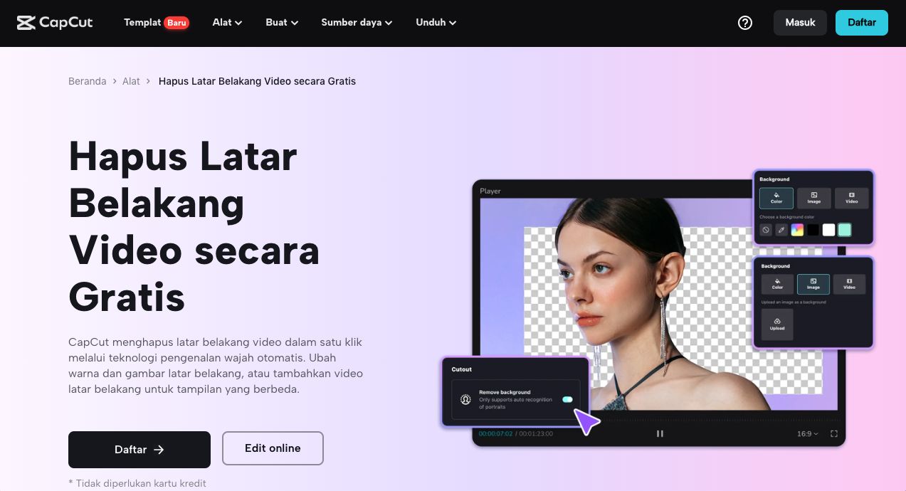 Editor video online CapCut memungkinkan Anda melakukannya hapus background secara otomatis.