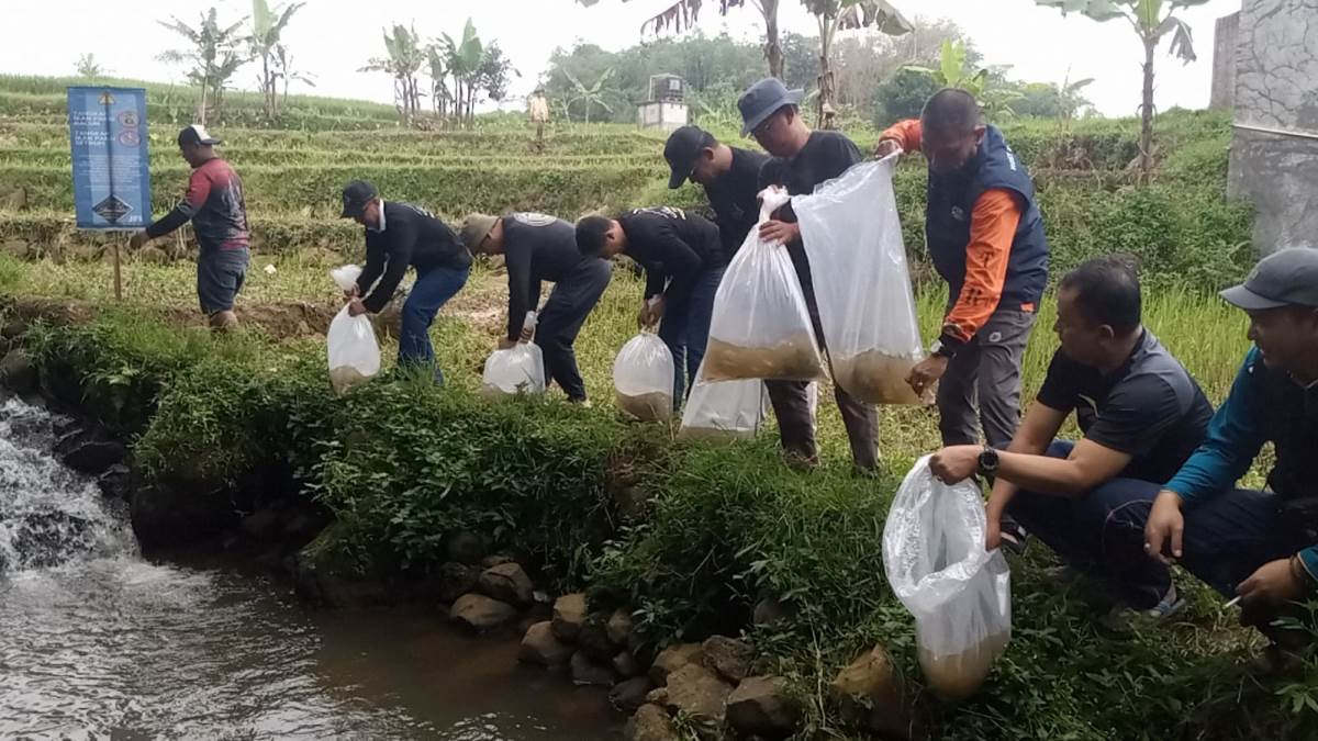 Bogordaily.net – Ribuan ekor benih berbagai ikan biota sungai, dilepas liarkan di aliran sungai Pamijahan, Minggu 16 Juni 2024.