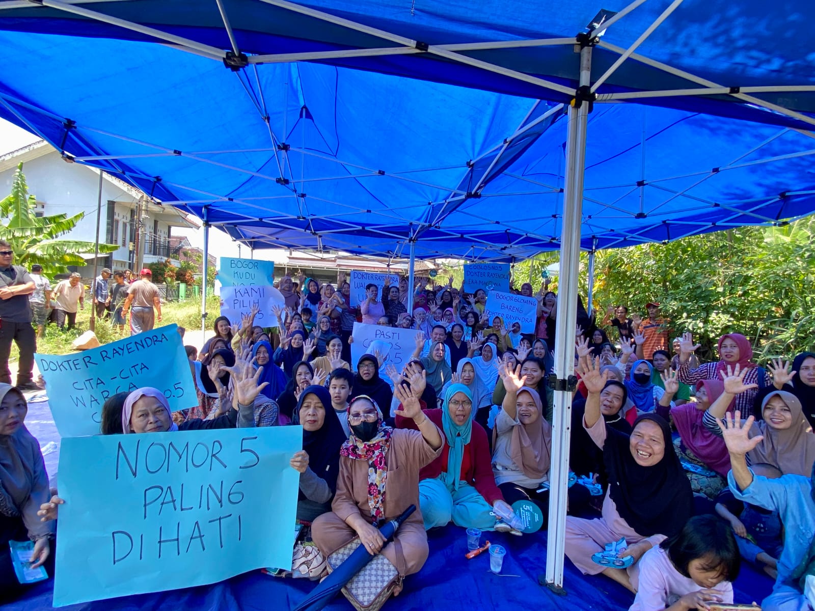 “Warga Sindangrasa, pasti coblos nomor 5, Dokter Rayendra – Eka Maulana!,” lantang ratusan warga. (*)