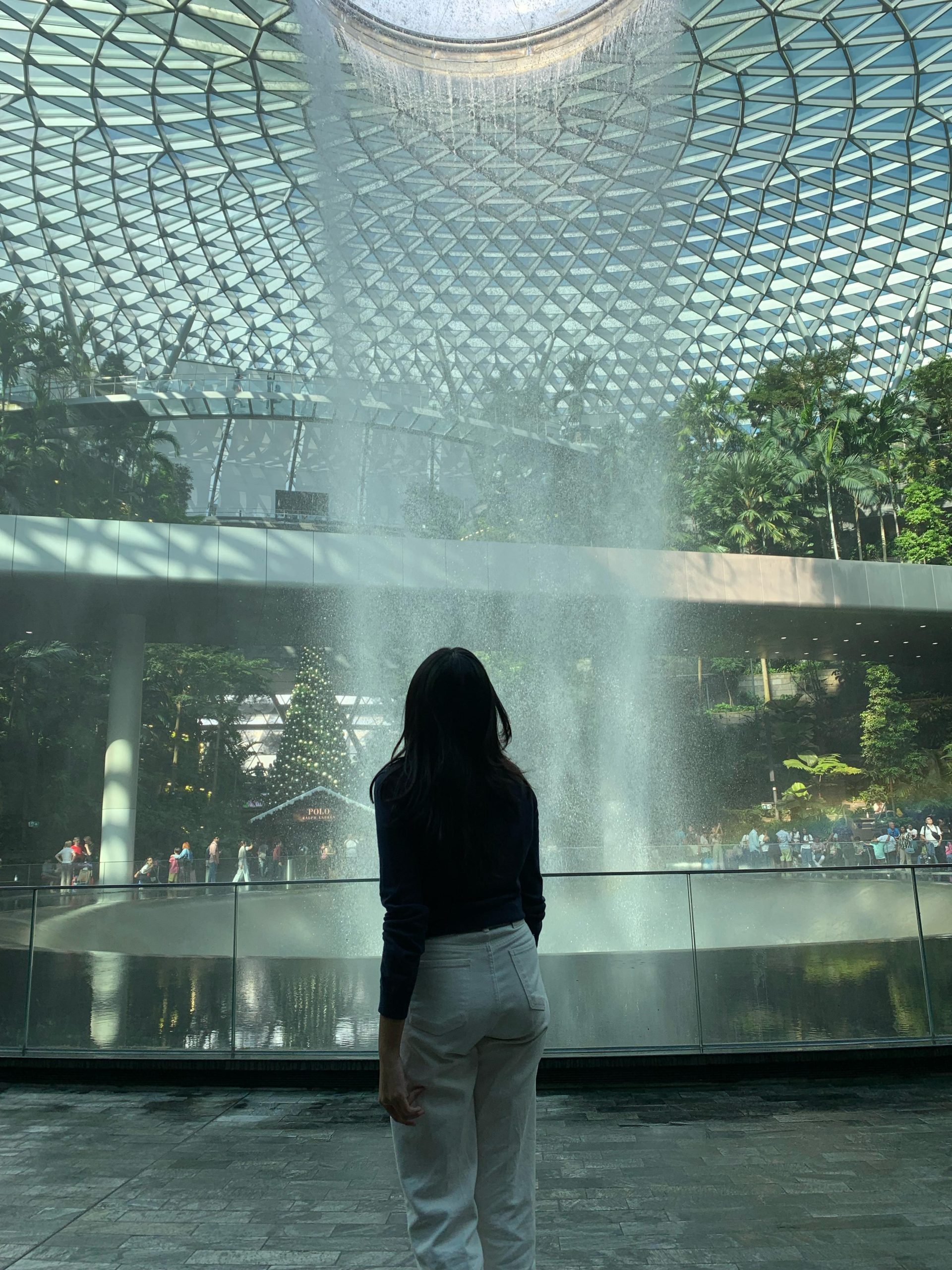 Setibanya di Singapura, tujuan pertama saya adalah Jewel Changi Airport. Bandara ini bukan sekadar tempat transit, tetapi juga memiliki daya tarik luar biasa seperti Rain Vortex, air terjun indoor tertinggi di dunia. Di sini, saya menikmati suasana tropis yang menyegarkan dengan taman hijau dan desain arsitektur yang futuristik. Berjalan-jalan di sekitar Jewel memberikan kesan pertama yang luar biasa tentang Singapura.