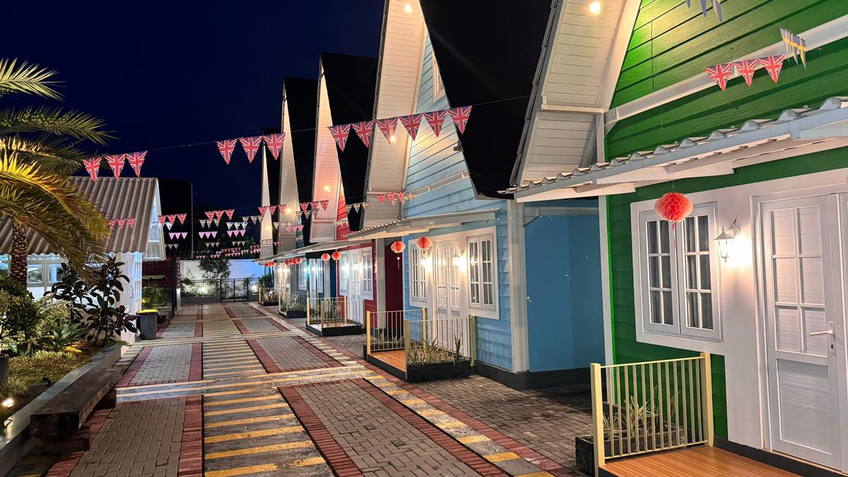 Sesampainya di Oasis Sukabumi, kami merasa takjub dengan keindahan tempat ini. Karena sudah sore, kami mendapat kesempatan masuk secara gratis melalui jalur Cottage. Saat melangkahkan kaki ke dalam, aku langsung terpesona dengan ornamen-ornamen unik dari berbagai belahan dunia, seperti rumah koboi khas Amerika, kotak telepon merah ala Inggris, serta patung prajurit Inggris yang berukuran manusia.