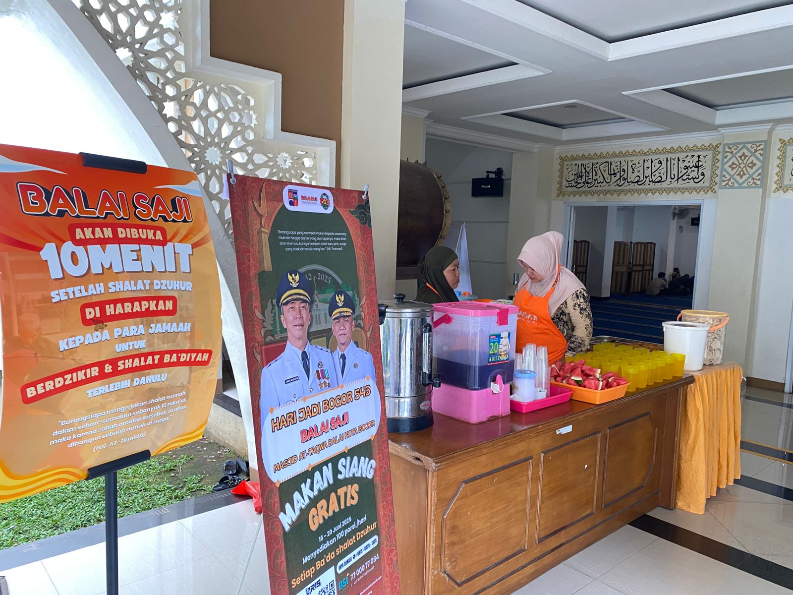 Bogordaily.net – Dalam rangka memperingati Hari Jadi Bogor (HJB) ke-543, Bogordaily.net bersama Balai Saji dan Pemerintah Kota Bogor menggelar program makan siang gratis bertajuk “Balai Saji” yang dibuka secara resmi di Masjid At-Taqwa, Balai Kota Bogor, pada Selasa 17 Juni 2025.