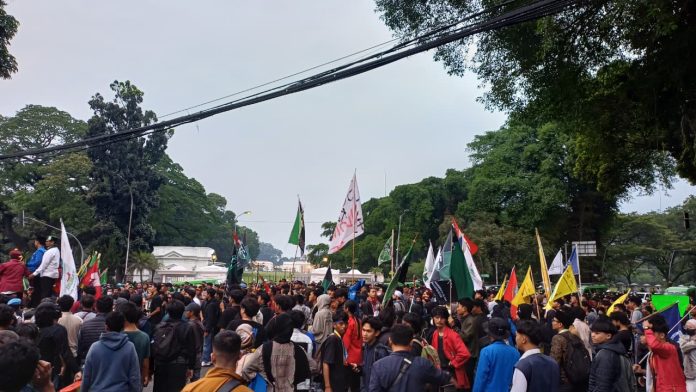 Aksi ini dilakukan di depan pintu Istana Bogor, pada Senin 1 September 2025.