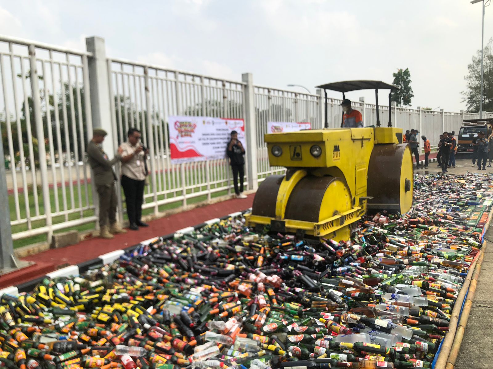 Tumpukan rokok dan miras hasil sitaan itu dimusnahkan sebagai bentuk komitmen pemerintah dalam menekan peredaran barang ilegal yang merugikan negara