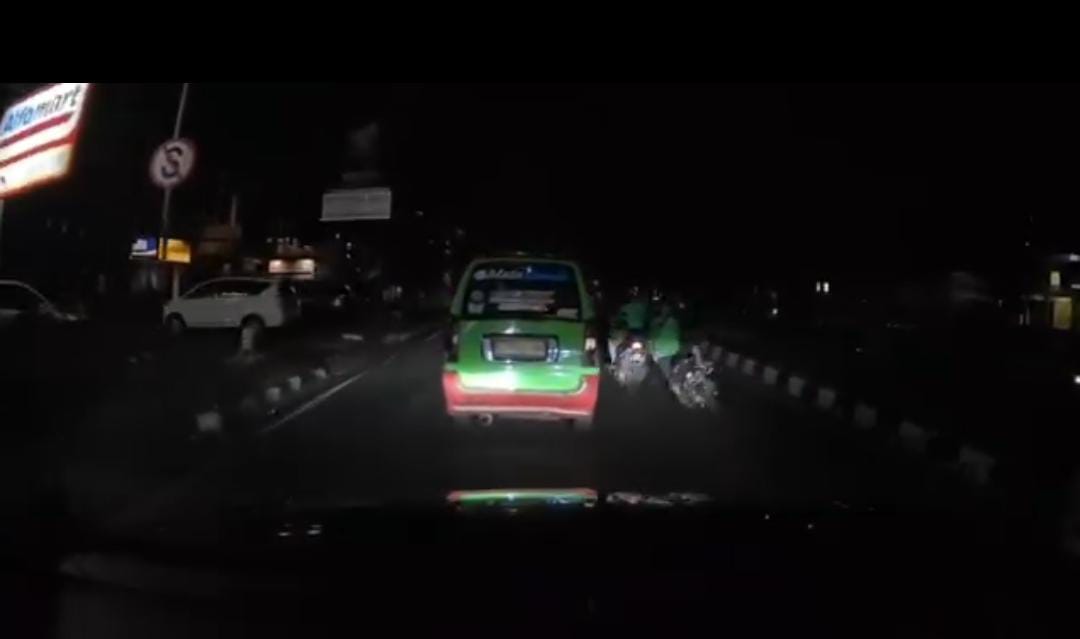 Insiden ini menarik perhatian warga dan pengguna jalan karena terjadi di jalur utama yang cukup padat pada malam hari.
