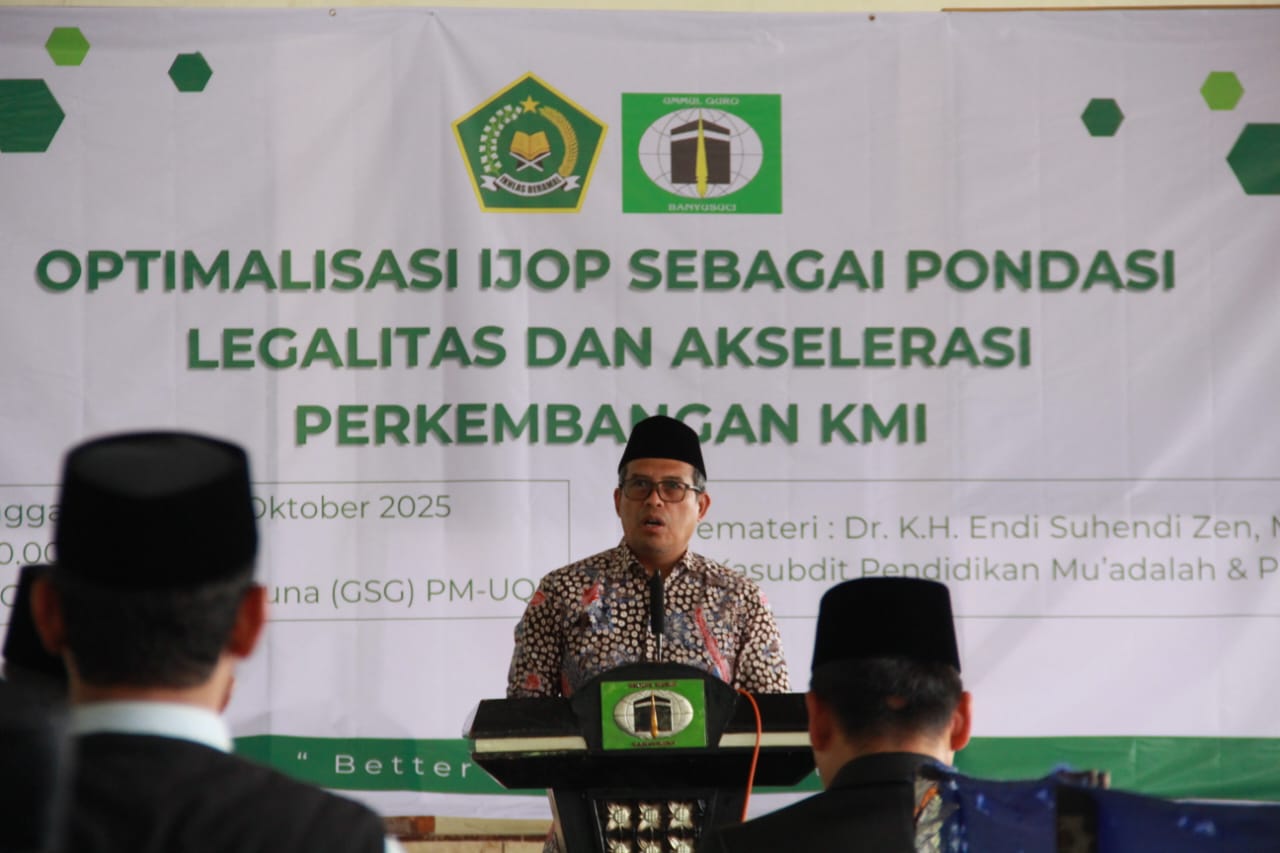 Dalam pemaparannya, KH Endi juga menjelaskan bahwa IJOP merupakan sistem digital resmi Kementerian Agama yang memberikan verifikasi dan legalitas operasional bagi lembaga pesantren di seluruh Indonesia.