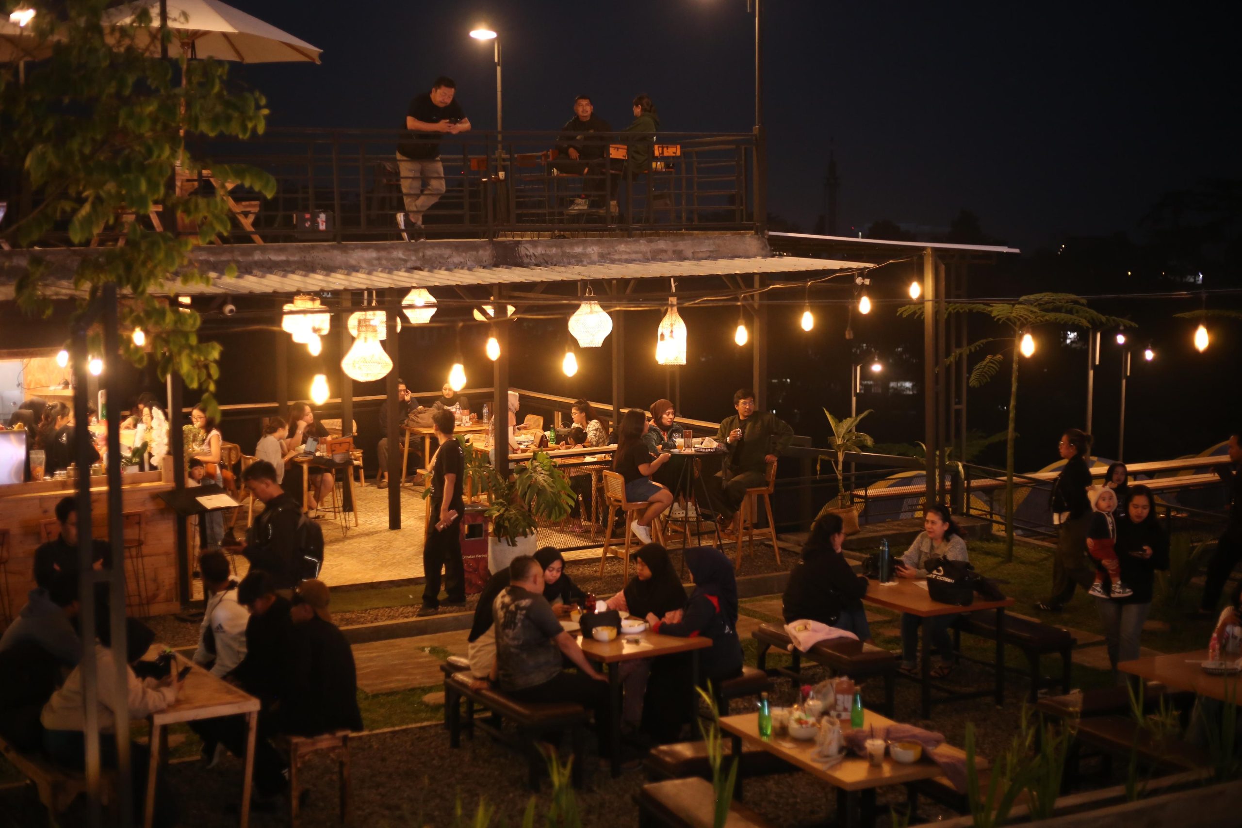 “pengunjung yang hanya ingin ngopi tanpa camping pun tetap bisa datang ke kafe 24 jam ini,” tambahnya.