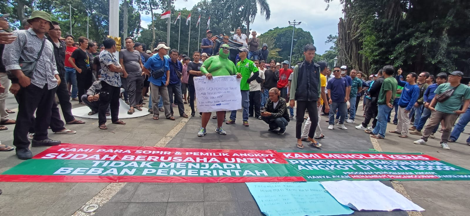 Mereka menuntut Pemerintah Kota (Pemkot) Bogor untuk menunda penerapan kebijakan pembatasan usia kendaraan serta membatasi jumlah kendaraan daring (online) yang semakin menggerus trayek angkot tradisional.