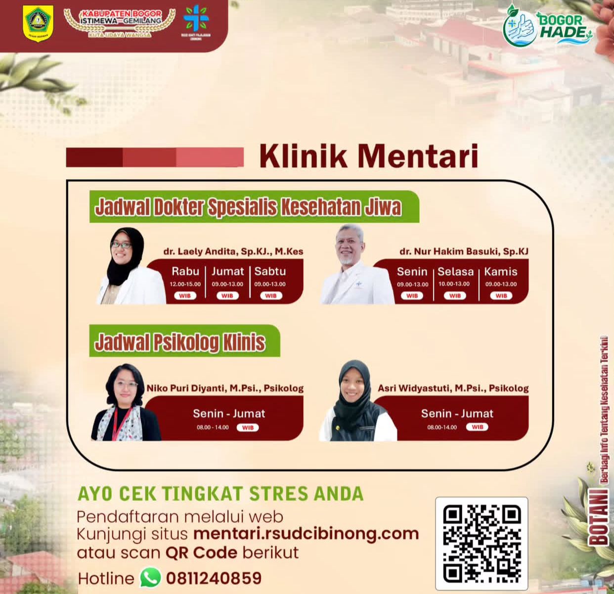 Layanan tersebut bisa dicek langsung melalui website di mentari.rsudcibinong.com dengan hotline kegawat daruratan kejiwaan di nomor 0811240859.