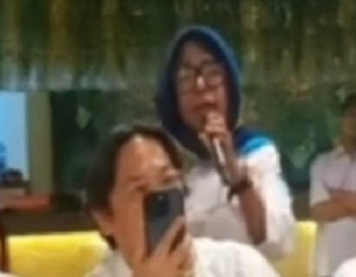 Dalam video berdurasi singkat yang beredar, tampak seorang perempuan berhijab biru berbicara penuh emosi di hadapan kamera dan disaksikan sejumlah rekan pendukung Jokowi yang duduk di belakangnya.