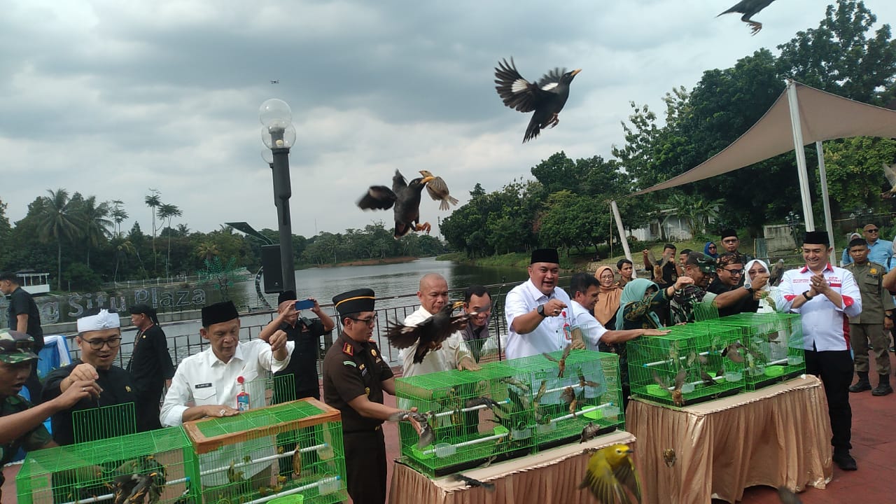Pemkab Bogor Tebar 10 Ribu Benih Ikan dan Lepas Liarkan Burung di Cibinong Situ Plaza