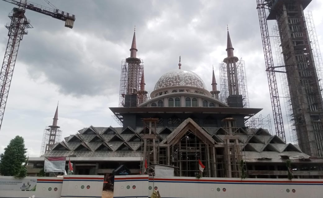 Bogordaily.net – Progres pembangunan Masjid Raya Kabupaten Bogor, yang terletak di Kelurahan Pakansari, Kecamatan Cibinong kini hampir selesai jelang akhir tahun 2025.