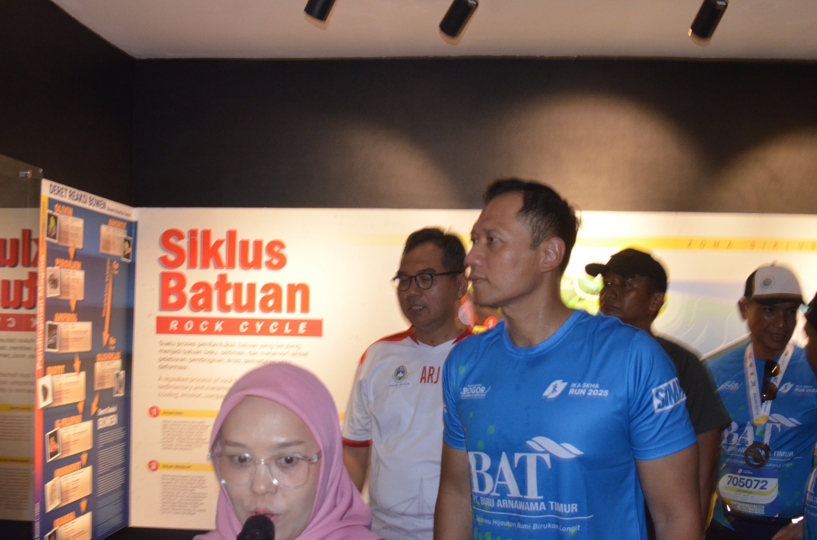 “Saya sempat masuk ke Pusat Informasi Geologi Geopark Bogor Halimun Salak, di sana dijelaskan beberapa hal yang tentunya menarik untuk bisa kita jaga bersama-sama,” kata Menko AHY.