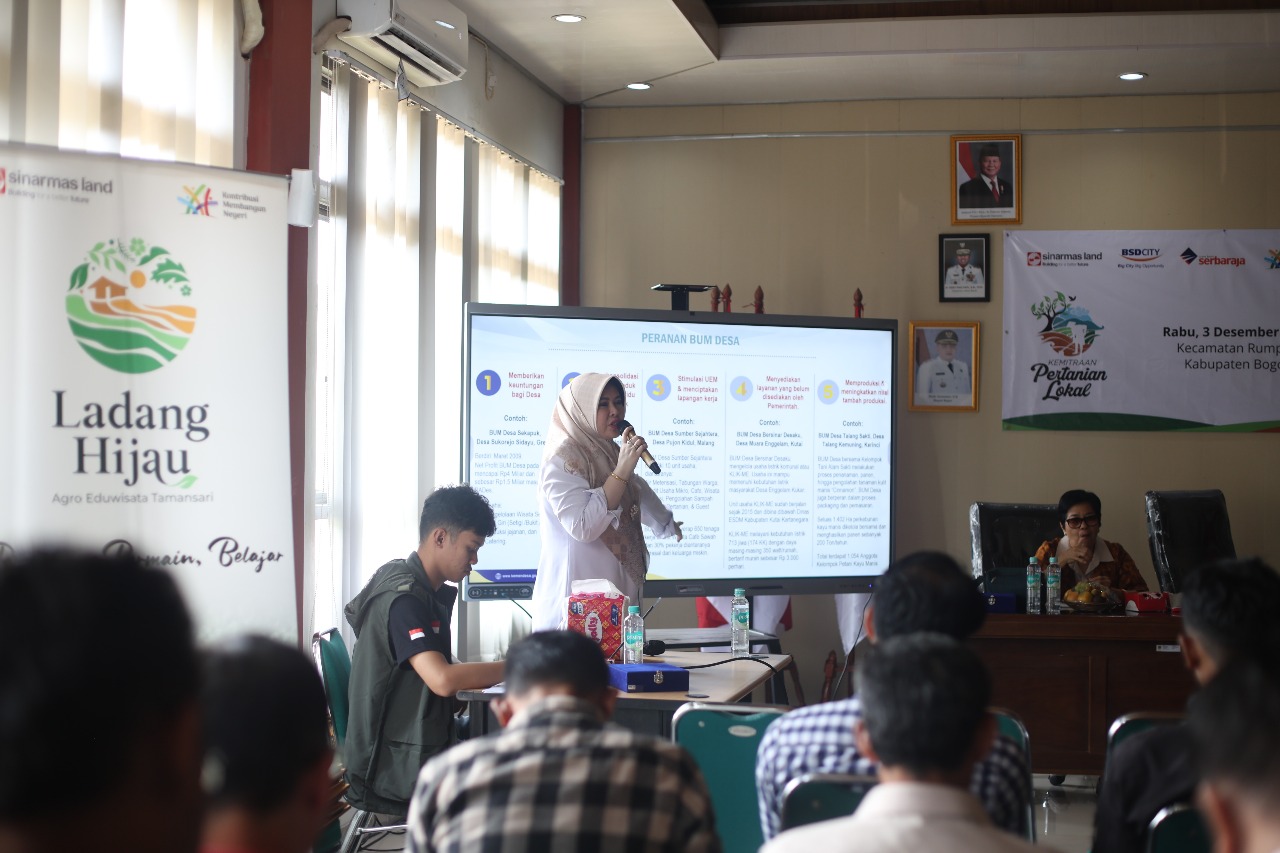Melihat urgensi tersebut, Sinar Mas Land menyelenggarakan kegiatan Edukasi Pengembangan Potensi Lokal di Kecamatan Rumpin, di Kantor Kecamatan Rumpin, Kabupaten Bogor pada 3 Desember 2025. Sebagai bagian dari Program Kemitraan Pertanian Lokal Divisi Corporate Social Responsibility (CSR) Sinar Mas Land, inisiatif ini ditujukan untuk memperkuat kapasitas perangkat desa dan BUMDes agar dapat mengoptimalkan potensi lokal serta mendorong pertumbuhan ekonomi desa yang lebih berkelanjutan.