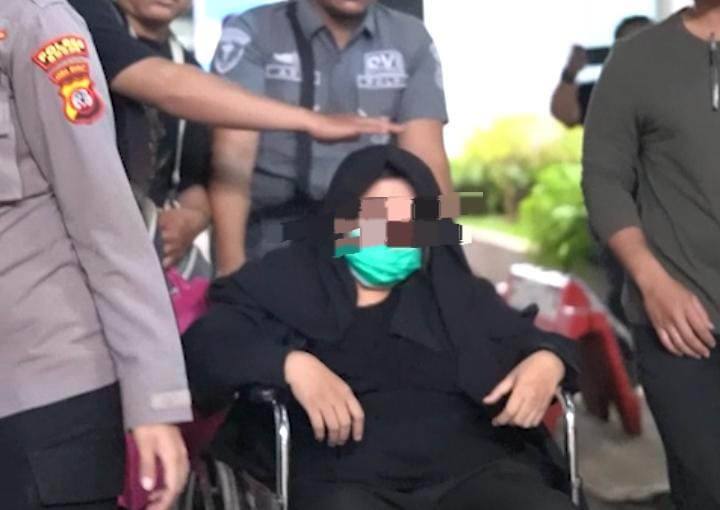 Ia yang duduk di kursi roda didorong oleh beberapa orang. Wajahnya tertutup masker dan kain hitam, sehingga tidak dapat dikenali.