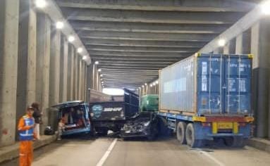 Truk kemudian oleng dan menabrak sejumlah kendaraan yang ada didepannya yang berada di underpass.