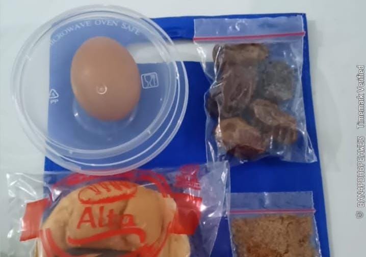 Dalam foto yang diterima redaksi Bogordaily.net terlihat menu makanan yang diberikan oleh salah satu SPPG di wilayah Megamendung itu hanya dengan roti, telur dan dua butir kurma.