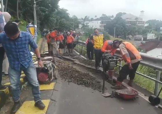 Sebelumnya, Jalan Salah Danasamsita, Kelurahan Batu Tulis, Kecamatan Bogor Selatan, Kota Bogor, mengalami keretakan dan penurunan kontur tanah.
