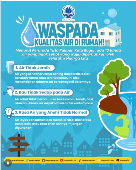 Perumda Tirta Pakuan Kota Bogor mengingatkan bahwa air yang tampak biasa saja belum tentu layak konsumsi apabila menunjukkan tanda-tanda tertentu.