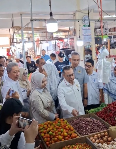 Dalam kunjungannya, rombongan melakukan peninjauan langsung terhadap stabilitas harga serta ketersediaan bahan pokok di pasar.