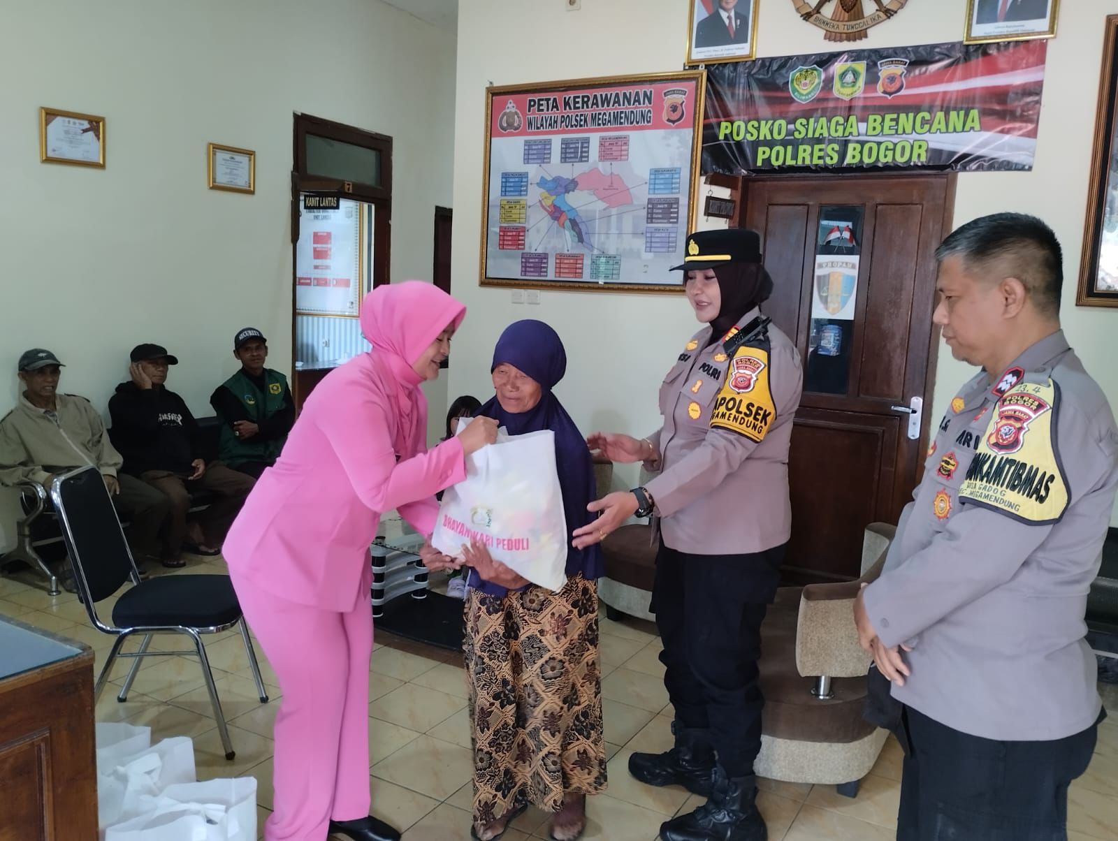 Kegiatan yang berlangsung sejak pukul 10.00 WIB itu dipimpin langsung Kapolsek Megamendung, AKP Desi Triana, S.H., M.H., didampingi anggota serta perwakilan Bhayangkari Ranting Polsek Megamendung.