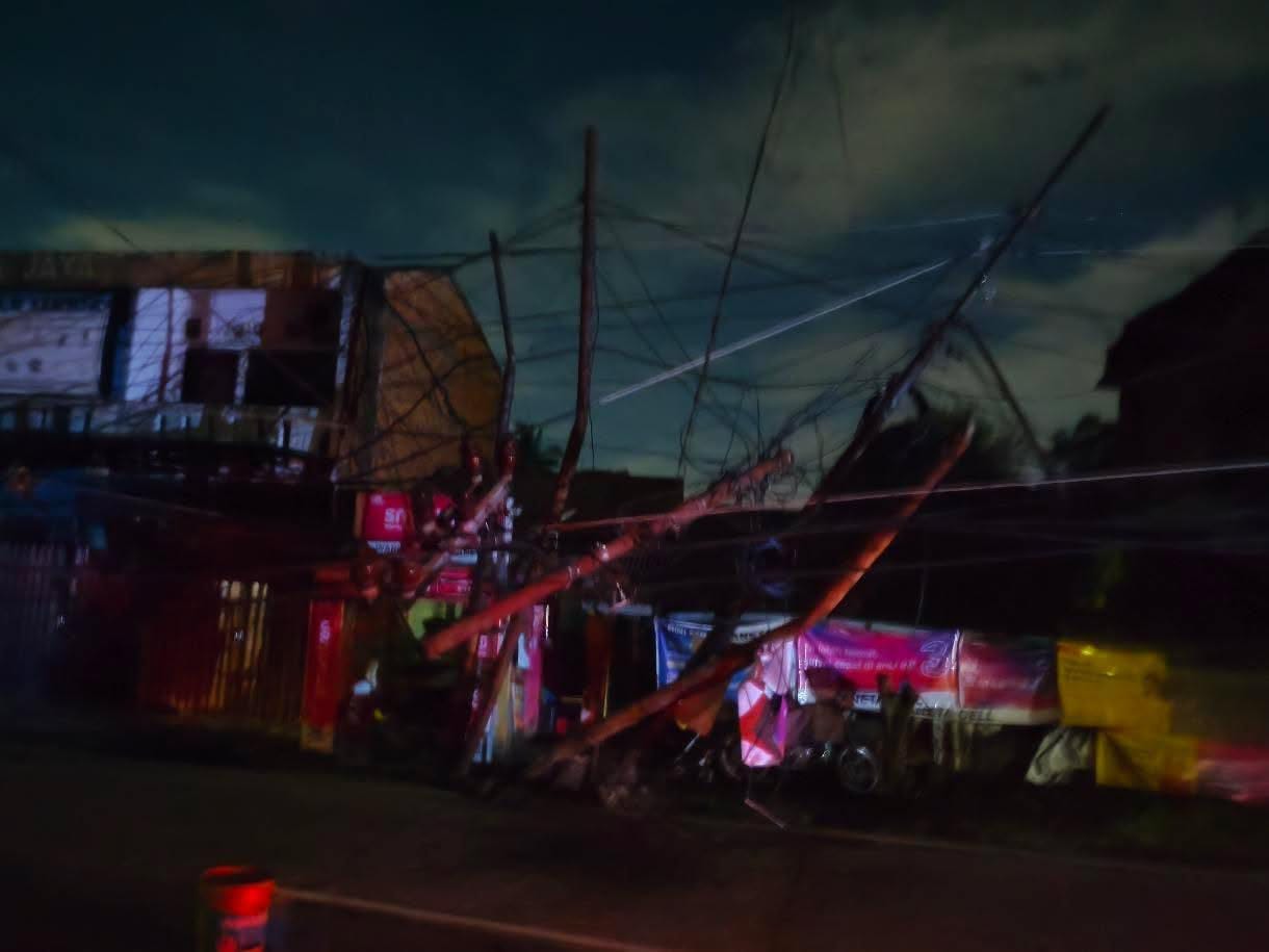 Beberapa kabel listrik juga ikut tertarik dan melintang di badan jalan, sehingga sempat menghambat arus lalu lintas dan membuat kendaraan tidak dapat melintas di lokasi kejadian.