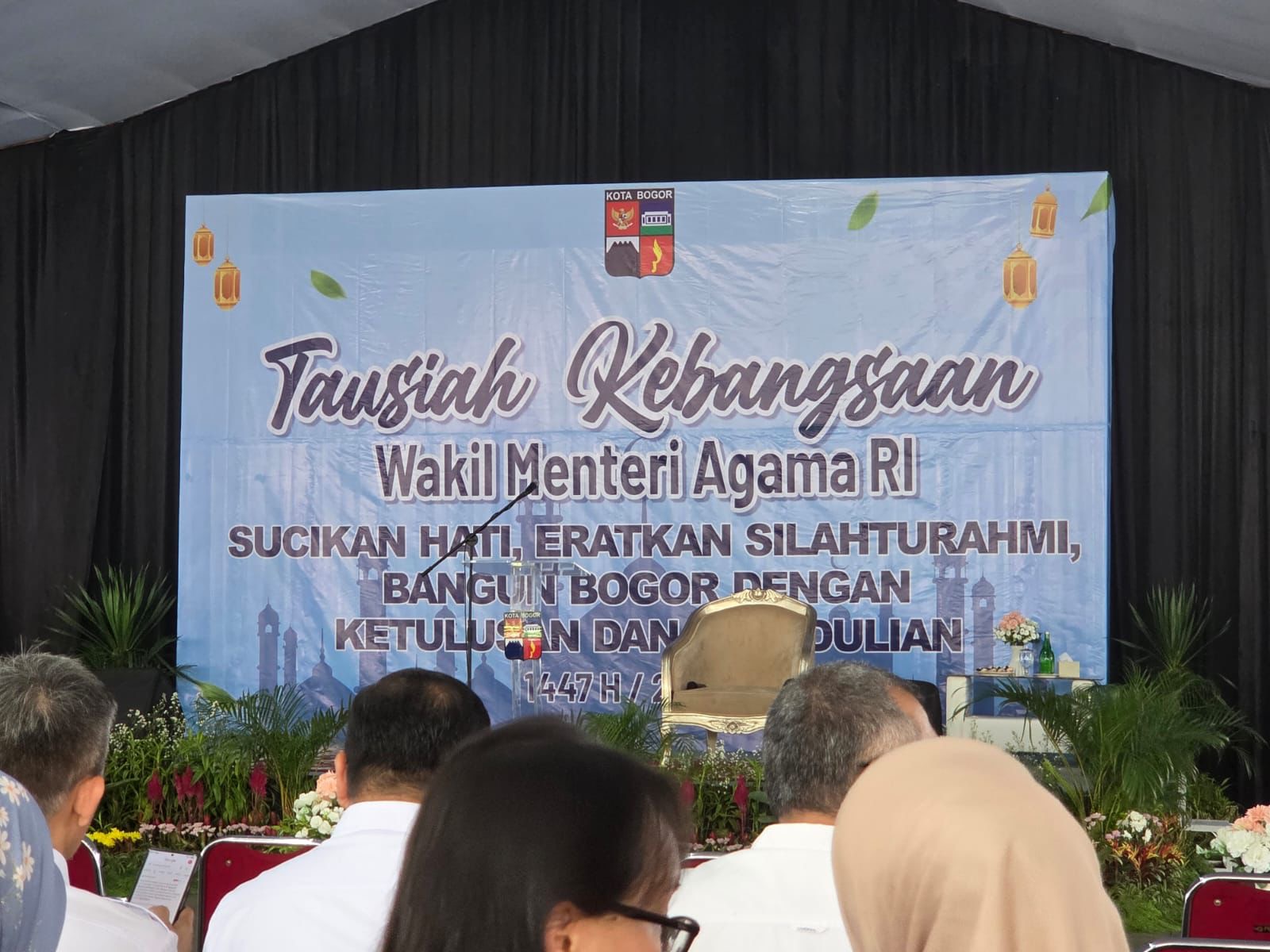 Tausiah Kebangsaan yang mengusung tema “Sucikan Hati, Eratkan Silaturahmi, Bangun Bogor dengan Ketulusan dan Kepedulian” diadakan di Plaza Balai Kota Bogor dan dihadiri oleh Wali Kota Bogor beserta Forum Koordinasi Pimpinan Daerah (Forkopimda) Kota Bogor.